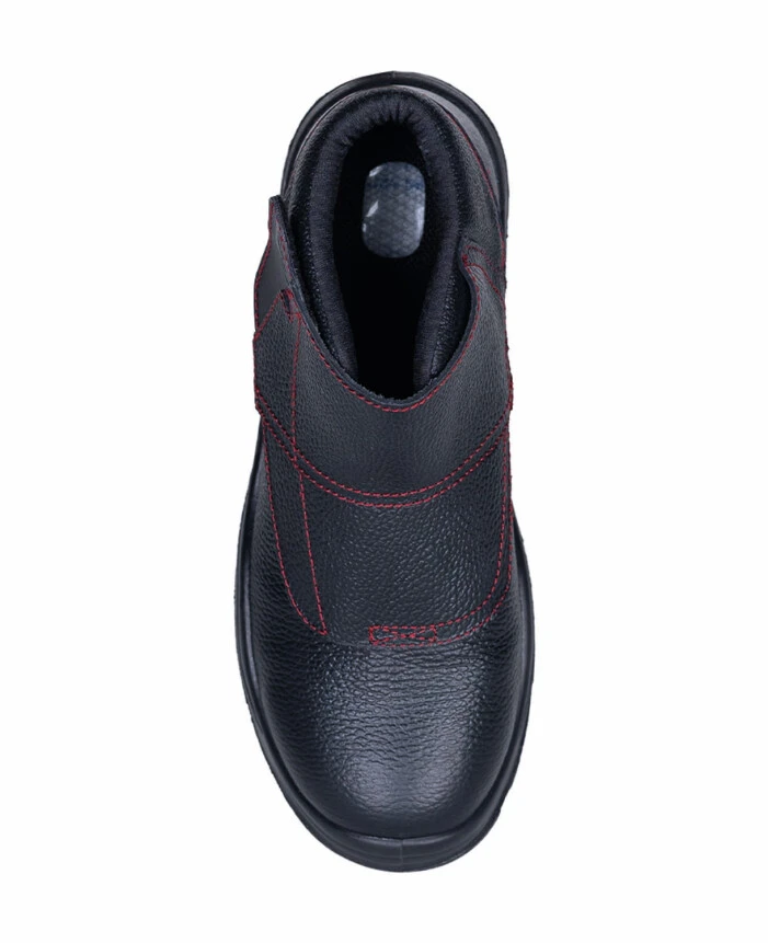 Buty ochronne przeznaczone dla spawaczy i pracowników przemysłu metalowego, narażonych na wysokie obciążenia cieplne i mechaniczne. Cholewka wykonana jest z wysokiej jakości skóry bydlęcej z powłoką hydrofobową, zapewniającą odporność na ciepło i uszkodzenia mechaniczne. Dwuwarstwowa podeszwa z PU/gumy zapewnia doskonałą przyczepność i odporność na temperatury do 300 °C. Stalowy podnosek chroni palce przed uderzeniami i naciskiem, a wkładka kevlarowa skutecznie zapobiega przebiciu. Zapięcie na rzep umożliwia szybkie i bezpieczne zakładanie bez luźnych elementów, które mogłyby złapać iskry. Obuwie spełnia wymagania dotyczące ochrony podczas spawania, szlifowania i innych ryzykownych prac.