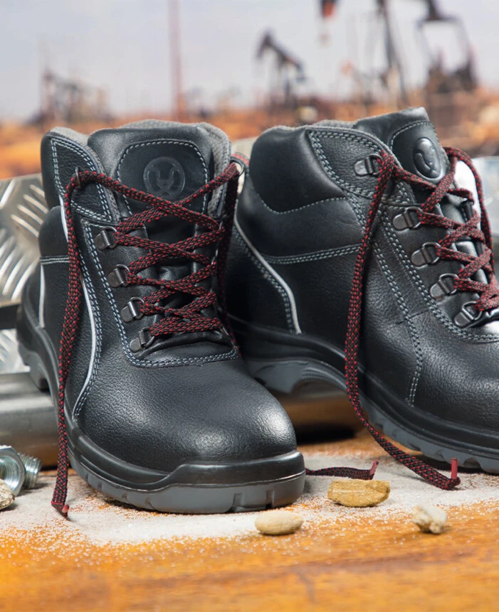 - ze stalowym podnoskiem i wkładką, wodoodporne wykończenie cholewki