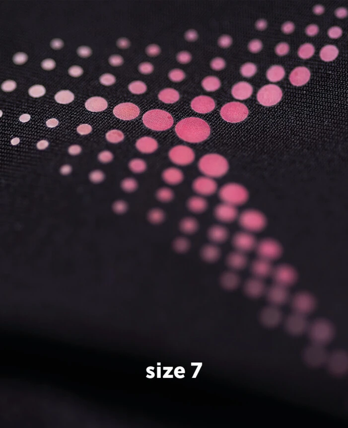 - rozmiar 07 z różowymi punktami na grzbiecie