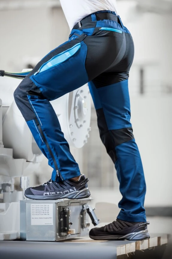 Spodnie robocze do pasa z elastycznymi wstawkami zostały zaprojektowane z myślą o maksymalnym komforcie i długiej żywotności. Połączenie nowoczesnych materiałów zapewnia doskonałą wytrzymałość, elastyczność i trwałość nawet w wymagających warunkach. Spodnie wykonano ze specjalnej tkaniny z wzmocnionymi panelami Cordura® dla maksymalnej ochrony partii narażonych na przetarcia. Anatomiczny krój 3D Silhouette COMFORT FIT zapewnia swobodę ruchów, ergonomicznie zaprojektowane linie zapewniają wygodne dopasowanie, a boczne zamki wentylacyjne z siateczką pomagają w odprowadzaniu ciepła. Elastyczny pas zapewnia wygodną regulację obwodu talii. Spodnie wyposażono w nity zwiększające trwałość i metalowy D-ring do mocowania przedmiotów. Praktycznie zaprojektowane kieszenie obejmują 2 głębokie kieszenie wpuszczane, 2 kieszenie na telefon komórkowy zapinane na zamek i małe przedmioty oraz dwie kieszenie wielofunkcyjne zapinane z tyłu spodni. Dla zwiększenia bezpieczeństwa, spodnie są wyposażone w dynamiczne elementy odblaskowe, które poprawiają widoczność podczas pracy w warunkach słabego oświetlenia. Dolne brzegi nogawek wyposażono w zamki umożliwiające poszerzenie obwodu dla łatwego naciągnięcia spodni na szersze obuwie; ukryte metalowe haczyki pomagają utrzymać spodnie na właściwym miejscu. Spodnie są kompatybilne z dodatkowymi wzmocnionymi kieszeniami narzędziowymi, które można przymocować do pasa za pomocą rzepów. Zestaw dodatkowych kieszeni na narzędzia, który uzupełnia kolekcję, można zamówić osobno pod numerem katalogowym H6260.